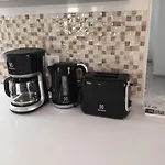 - ❓Is there a kitchen available at Sleeps 4 Near Beach apartment for guest use?Yes, Sleeps 4 Near Beach apartment is furnished with a fully furnished kitchen and offers an electric kettle, a refrigerator, and a stove top as well.